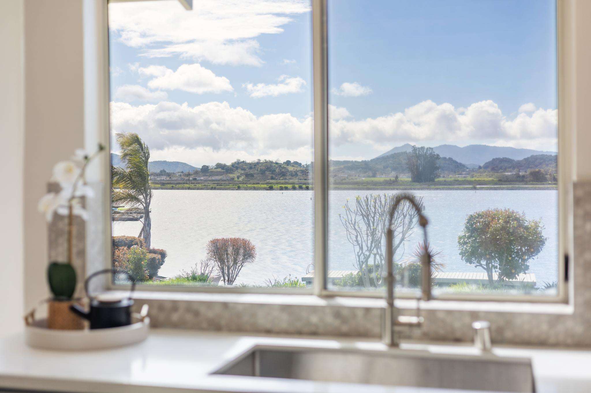 Imagine sipping a glass of wine on your expansive deck or paddling on the water as the sun sets behind the bay and mountains.